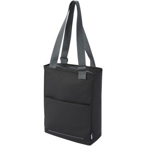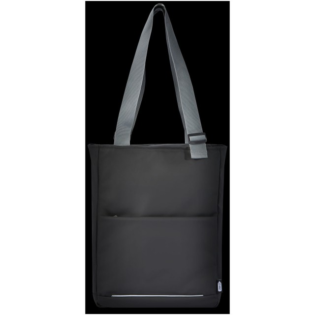 Voděodolná taška na notebook vyrobená z recyklovaných materiálů GRS, včetně zipů. Obsahuje vyhrazené pouzdro na tablet, přihrádku na 14” notebook, několik kapes pro organizaci, přední kapsu s organizačním panelem, nastavitelné 35 cm dlouhé rukojeti a popruh na zavazadla. Z recyklovaných materiálů GRS je vyrobena hlavní tkanina, podšívka, popruhy a zipy. Kapacita: 14 litrů. Neobsahuje PVC.