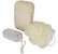 3dílná sada koupelnových doplňků obsahující kouli do koupele / lufu, pemzu a houbu ze sisalového konopí. Velikost koule do koupele / lufy: 9 cm. Velikost pemzy: 9,5 × 4,5 × 1,5 cm. Velikost konopné houby: 14 × 8 × 5 cm. Dodáváno v sáčku z polyesteru.