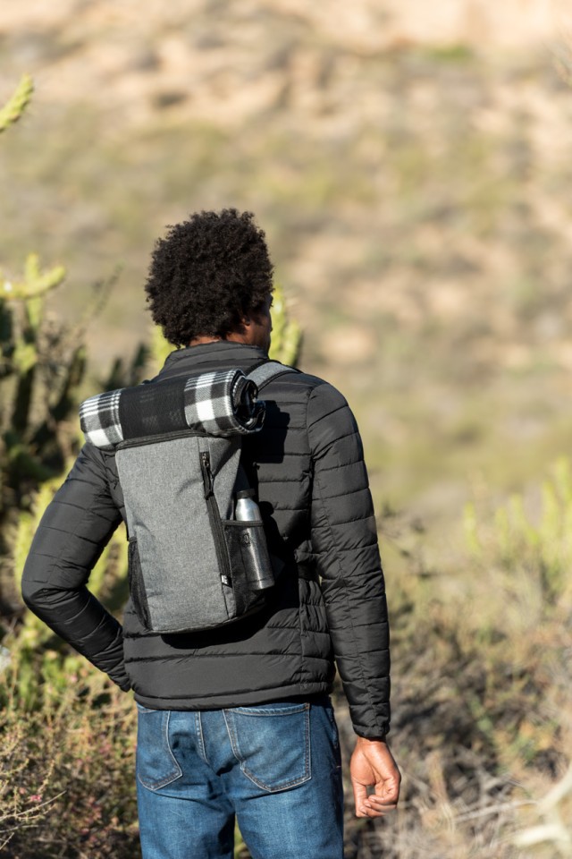 Chladící batoh RPET s hlavní kapsou na zip s PEVA výstelkou, bočními síťovanými kapsami a polstrovanými ramenními popruhy. S výrazným štítkem RPET. Polyester 600D RPET.