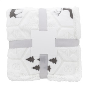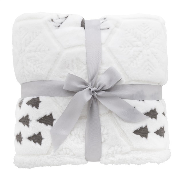 Luxusní dvouvrstvá vánoční deka z RPET s reliéfním zimním vzorem. S flanelovým fleecovým materiálem RPET 270 g/m² a oboustrannou podšívkou z RPET sherpa fleecu 210 g/m². Zabaleno do stuhy a tisknutelného papírového kartonu.