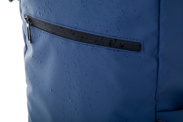 Vodotěsný rolovací batoh z RPET se zapínáním na přezku a suchý zip, polstrovaná přihrádka na notebook (16") a tablet (10"), přední kapsa na zip, boční kapsy, polstrovaná záda a ramenní popruhy. Polyester 600D RPET potažený PU, s výrazným štítkem RPET.