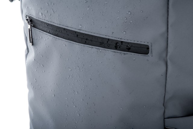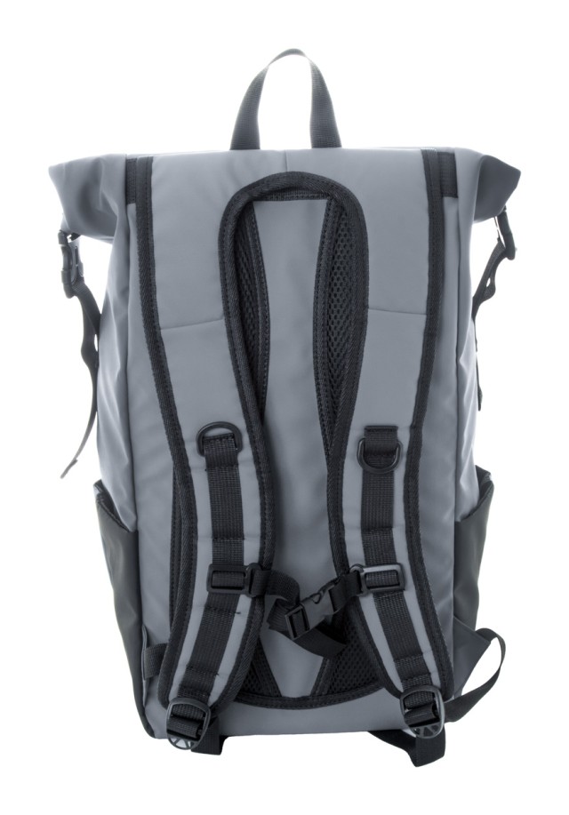Vodotěsný rolovací batoh z RPET se zapínáním na přezku a suchý zip, polstrovaná přihrádka na notebook (16") a tablet (10"), přední kapsa na zip, boční kapsy, polstrovaná záda a ramenní popruhy. Polyester 600D RPET potažený PU, s výrazným štítkem RPET.