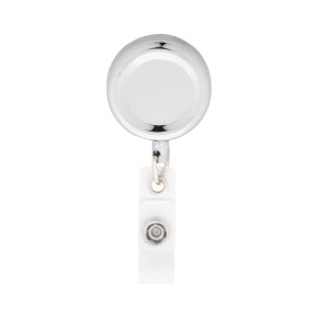Exkluzivní kovový držák na ski pass s vysoce lesklou metalickou povrchovou úpravou. Zapínání na druk, teleskopická šňůra a kovová spona.