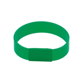 Silikonový náramek s kovovým štítkem.