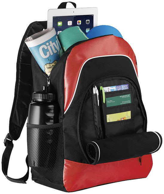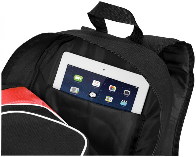 Hlavní prostor na zip obsahuje polstrovanou kapsu, do níž lze vložit většinu iPadů®, tabletů a čteček (eReader). Přední kapsa na zip s kompletním organizérem. Boční kapsa ze síťoviny. Polstrovaná záda. Nastavitelné polstrované popruhy. Zpevněné ucho pro přenášení. Tablet ani příslušenství nejsou součástí produktu.