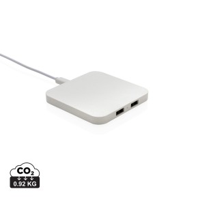 Bezdrátová nabíječka s výkonem 10 W a 2 USB výstupy. Vyrobená z RCS recyklovaného ABS plastu. RCS (Recycled Claim Standard) je globální standard, který umožňuje ověřit použití recyklovaného materiálu v produktu napříč celým dodavatelským řetězcem. Celkový podíl recyklátu dle váhy produktu: 57 %. Včetně 120 cm USB C nabíjecího kabelu z RCS recyklovaného TPE. Kompatibilní se všemi zařízeními podporujícími Qi jako jsou nejnovější generace Android a iPhone 8 a výše. Vstup USB C: 5V/2A, 9V/1,67A. Bezdrátový výstup: 5V/1A, 9V/1,1A 10 W. Baleno v FSC® dárkové krabičce.