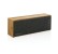 Luxusní 10W reproduktor s mimořádně čistým zvukem a výraznými basy. Vnější část vyrobena ze 100% FSC® certifikovaného bambusu. Plastové části vyrobené z recyklovaného ABS plastu s RCS certifikací. RCS (Recycled Claim Standard) je globální standard, který umožňuje ověřit použití recyklovaného materiálu v produktu napříč celým dodavatelským řetězcem. Celkový podíl recyklátu dle váhy produktu: 23 %. Baterie s kapacitou 2 000 mAh umožňuje poslech po dobu až 6h na jedno nabití. Plné nabití již za 3h. BT 5.1 pro hladké bezdrátové připojení na vzdálenost až 10m. Mikrofon pro možnost telefonování. Včetně nabíjecího kabelu z recyklovaného TPE. Baleno v FSC® dárkové krabičce.