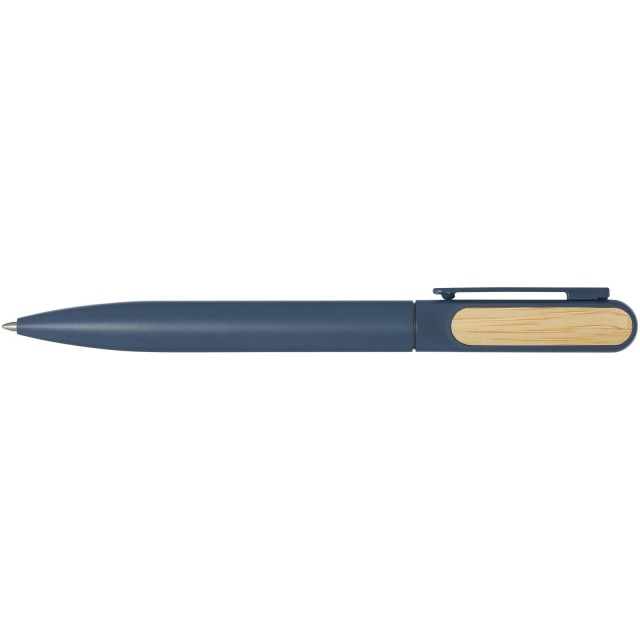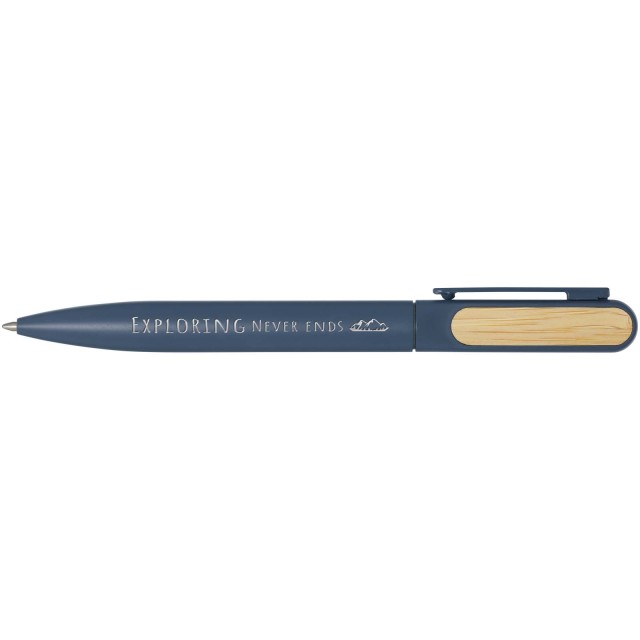 Kuličkové pero Blanca má horní část těla vyrobenou z recyklovaného plastu s barevným nástřikem a bambusové doplňky na obou stranách. Spodní část těla je vyrobena z recyklovaného hliníku s barevným nástřikem. Barva inkoustu: Černá. Délka psaní: 400 metrů. Rozměr hrotu: 1,0 mm.