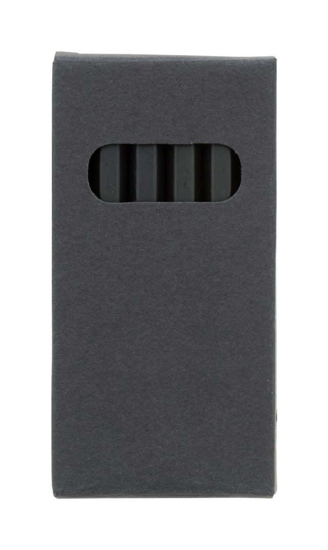 6dílná sada pastelek z černého dřeva v černé krabičce z papíru.