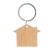 Bambusový přívěsek na klíče ve tvaru domečku s kovovým kroužkem.