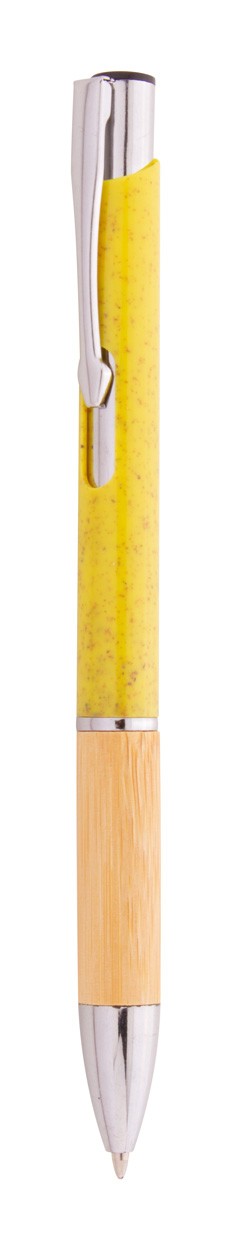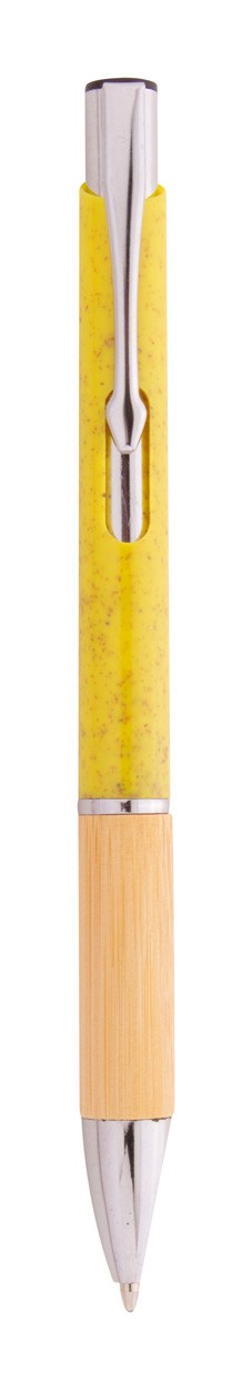 Ekologické plastové kuličkové pero z pšeničné slámy s bambusovým úchopem a kovovými částmi. S modrou náplní.