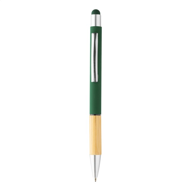 Hliníkové kuličkové a dotykové pero s bambusovým uchopením a matným povrchem. S modrou náplní.
