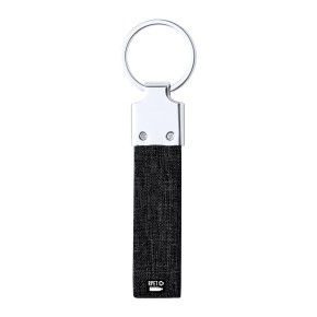 Kovový přívěsek na klíče s RPET polyesterovým páskem.