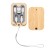 Ekologická sada USB nabíjecího kabelu z pšeničné slámy v magnetickém bambusovém pouzdře s popruhem na přenášení. Včetně kabelu USB-C s adaptéry USB, micro USB a Lightning.