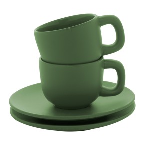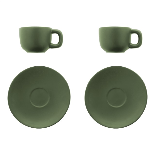 Vysoce kvalitní sada keramických šálků na espresso se 2 šálky a podšálky. S matnou vnější a lesklou vnitřní povrchovou úpravou. 85 ml. V kraftové papírové krabici.