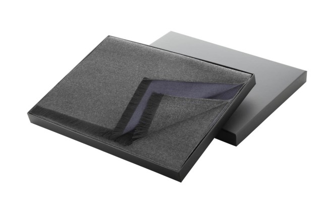 Elegantní pánská šála v černé dárkové krabičce. Vyrobeno ze směsi 38% polyester/62% viskóza. Produkt značky André Philippe.