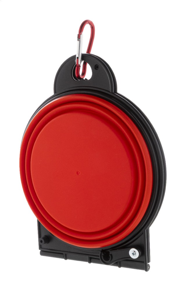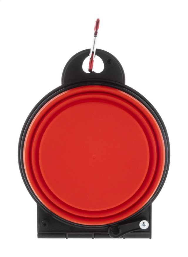 Skládací miska pro domácí mazlíčky z odolného TPE se dvěma přihrádkami o objemu 450 ml a barevně sladěnou hliníkovou karabinou.