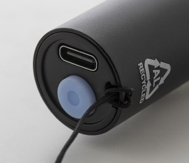 Baterka z recyklovaného hliníku s vestavěnou dobíjecí baterií USB (400 mAh) a popruhem na nošení. S vysoce výkonným COB světlem s možností zoomu a 3 světelnými režimy. Včetně nabíjecího kabelu USB.