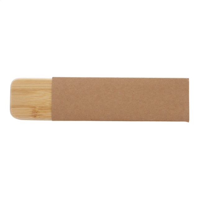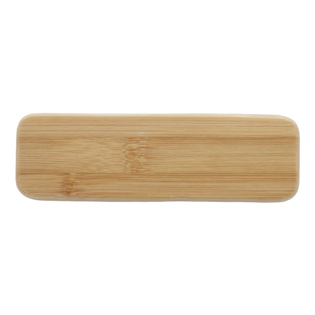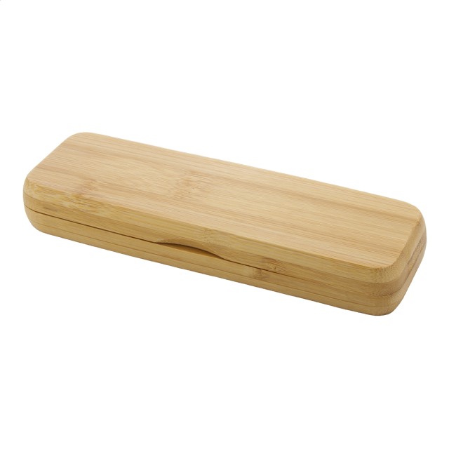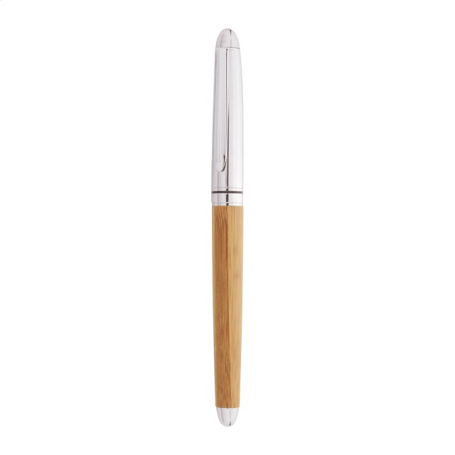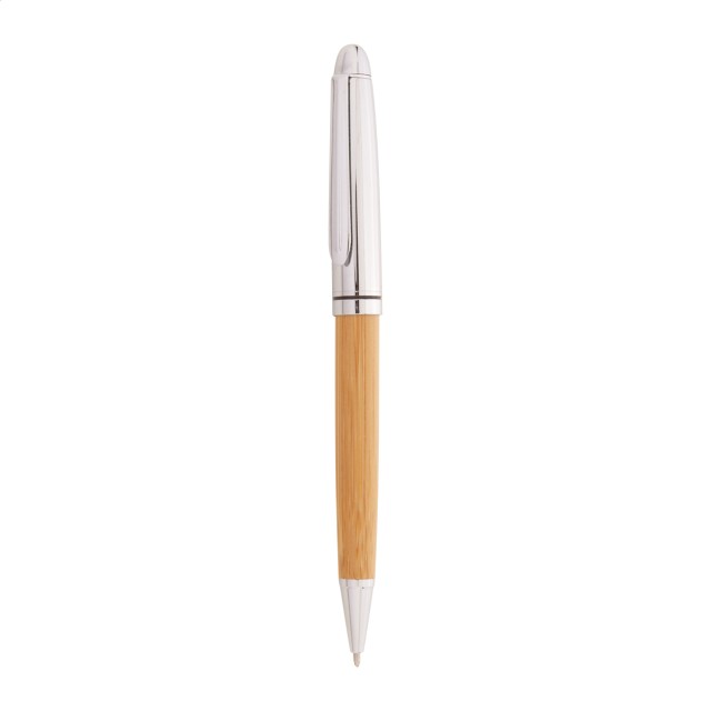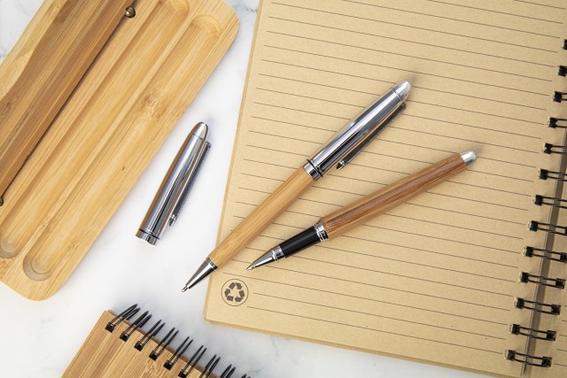 Elegantní sada s kuličkovým perem a rollerem, bambus/kov v dárkové krabičce z bambusu. S modrou náplní.