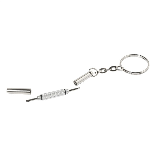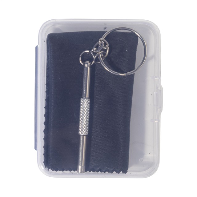 Kompaktní sada na opravu brýlí v průhledné PP krabičce. Včetně čisticího hadříku ze 100% RPET mikrovlákna (220 g/m²) a mini šroubováku s klíčenkou. Rozměr hadříku: 18×15 cm.
