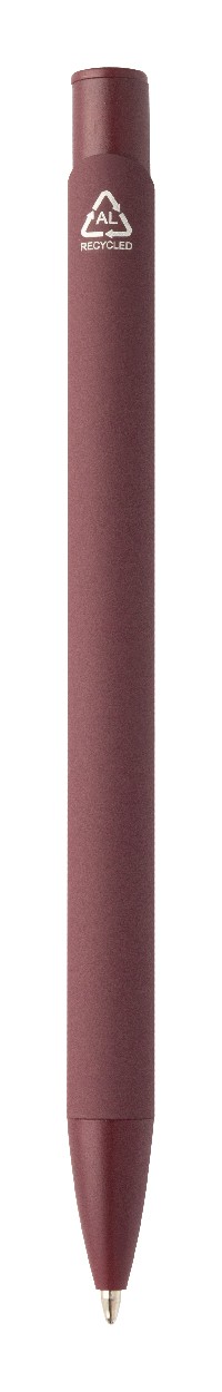 Kuličkové pero z recyklovaného hliníku s pogumovaným tělem a barevnými lesklými kovovými díly. Se speciálním povrchem pro zrcadlové gravírování, které odpovídá kovovým částem. S modrou náplní.