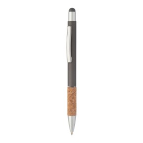 Hliníkové kuličkové a dotykové pero s úchopem z přírodního korku, matným povrchem těla a částí. S modrou náplní.