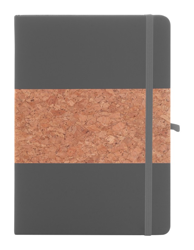 Blok A5 potažený přírodním korkem a recyklovanou PU kůží se záložkou v odpovídající barvě, gumičkou a držákem na pero. S 80 linkovanými listy z recyklovaného papíru.