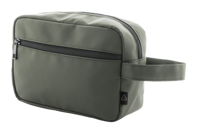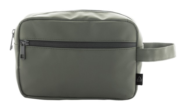 Kosmetická taštička z měkké recyklované PU kůže se dvěma přihrádkami na zip a uchem. S výrazným recyklovaným PU štítkem.