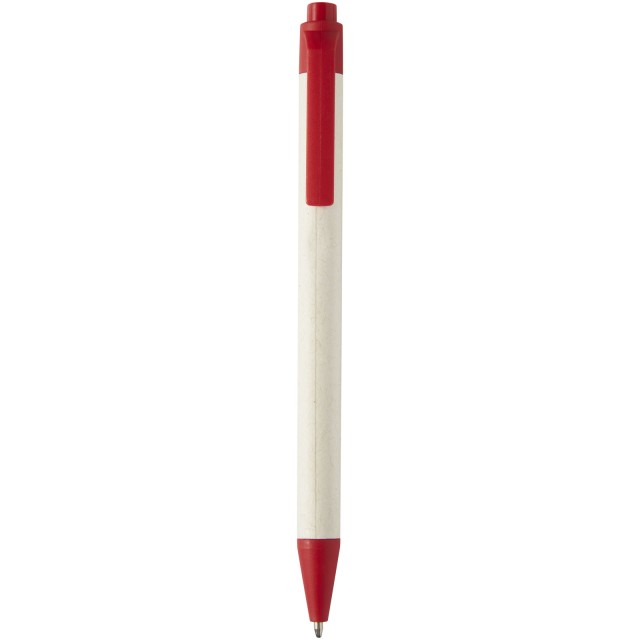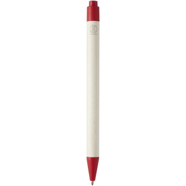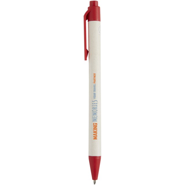 Klikací kuličkové pero s tubusem vyrobeným z recyklovaných kartonů od mléka (až ze 70 %). Tlačítko, spona a hrot jsou vyrobeny z PLA plastu. Použité krabice od mléka se sbírají, třídí, zpracovávají a mění na papír, čímž se odpad skutečně proměňuje v něco užitečného.