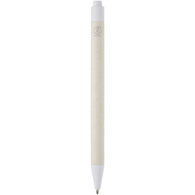 Klikací kuličkové pero s tubusem vyrobeným z recyklovaných kartonů od mléka (až ze 70 %). Tlačítko, spona a hrot jsou vyrobeny z PLA plastu. Použité krabice od mléka se sbírají, třídí, zpracovávají a mění na papír, čímž se odpad skutečně proměňuje v něco užitečného.