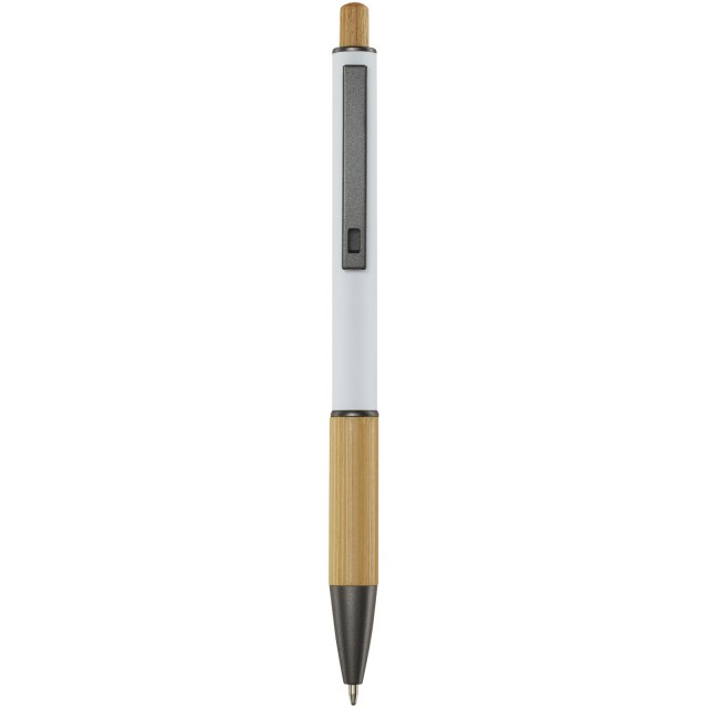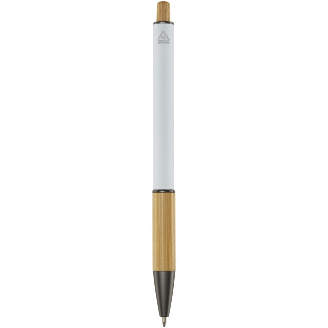 Kuličkové pero Darius je vyrobeno z recyklovaného hliníku, což vyžaduje méně energie než výroba hliníku z nerostných surovin. Snižuje také množství odpadu na skládkách a pomáhá šetřit přírodní zdroje s cílem snížit emise skleníkových plynů. Tlačítko a spodní část těla je vyrobena z bambusu. Barva inkoustu: Černá. Délka psaní: 800 metrů. Rozměr hrotu: 1,00 mm.