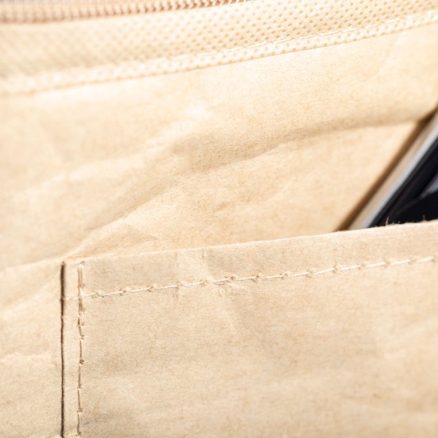 Chladící taška na zip z polaminovaného recyklovaného papíru s hliníkovou výplní, pro 6 ks plechovek 0,33 l. S přední kapsou ideální pro potisk.