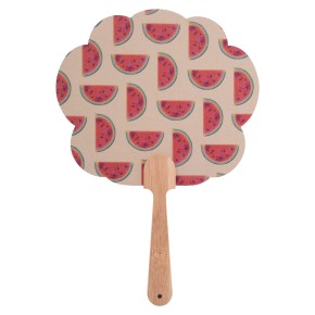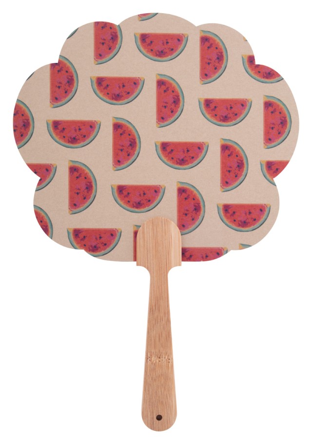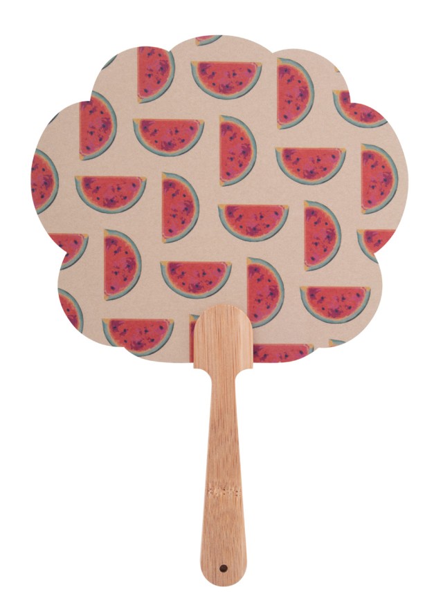 Vějíř vyrobený na zakázku s bambusovou rukojetí a kraftovým papírem. Cena zahrnuje digitální tisk na obou stranách, nezahrnuje tiskovou přípravu. Min. mn.: 100 ks.