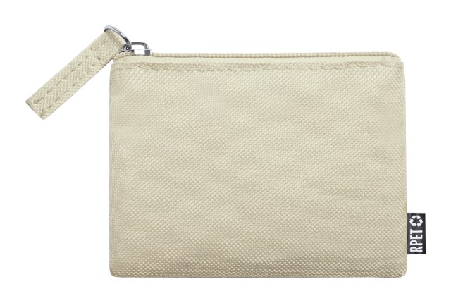 Peněženka na zip ze 600D RPET polyesteru, s etiketou s označením RPET.