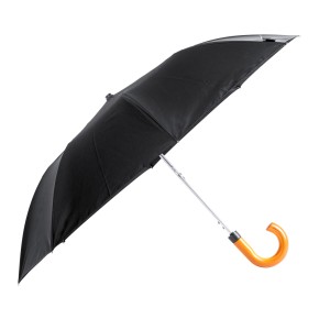 Automatický, větruodolný skládací deštník s 8 panely v pouzdru v odpovídající barvě. S kovovým rámem a dřevěnou rukojetí. Pongee 190T RPET. S výrazným štítkem RPET.