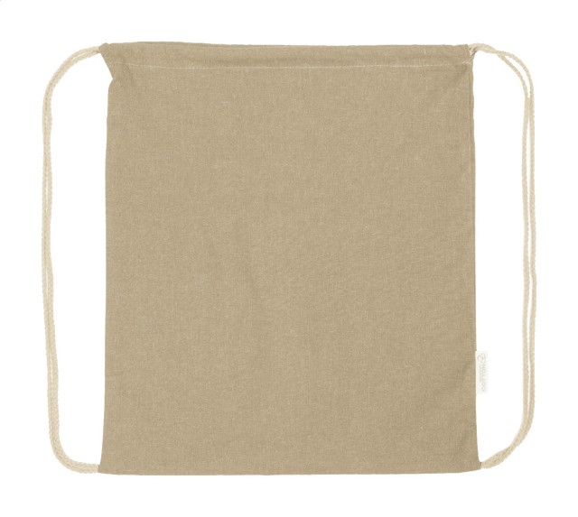 Vak se stahovací šňůrkou ze 70 % recyklované bavlny a 30 % polyesteru RPET, 140 g/m². S výrazným štítkem z recyklované bavlny.