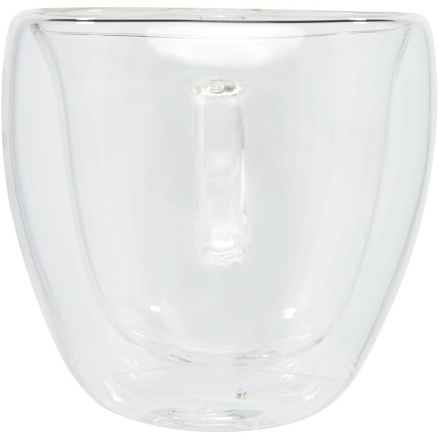 Sada 2 dvoustěnných termálních sklenic s bambusovým podšálkem. Bambus pochází z udržitelných, ekologicky a sociálně odpovědných zdrojů. Díky dvojitému borosilikátovému sklu se teplota nápoje udrží po dlouhou dobu. Objem je 100 ml. Rozměry podšálku: 8 × 8 × 1 cm.