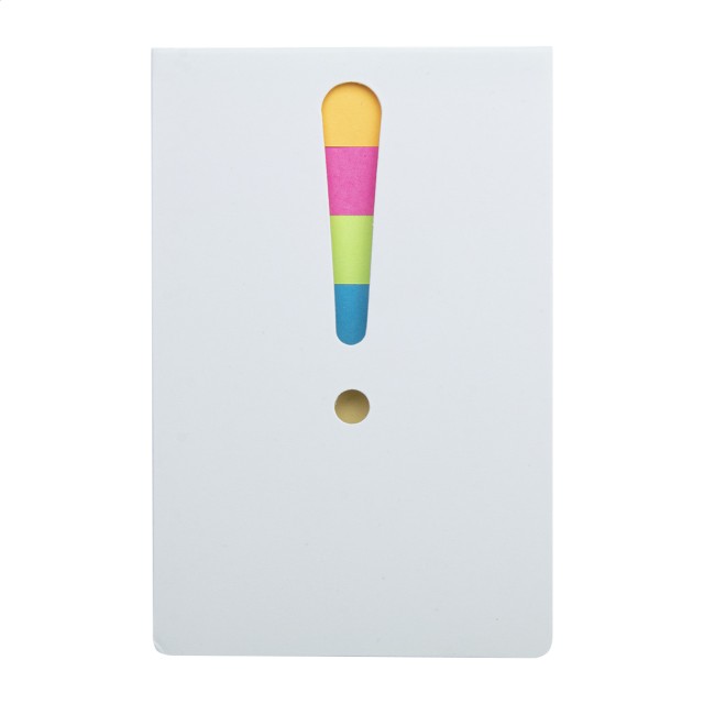 Samolepící bloček s 25 velkými a 100 malými samolepícími lístky (ve 4 různých barvách). S výřezem vykřičníku na deskách.