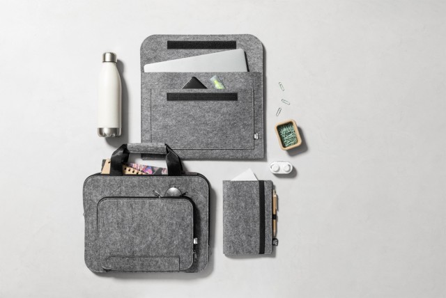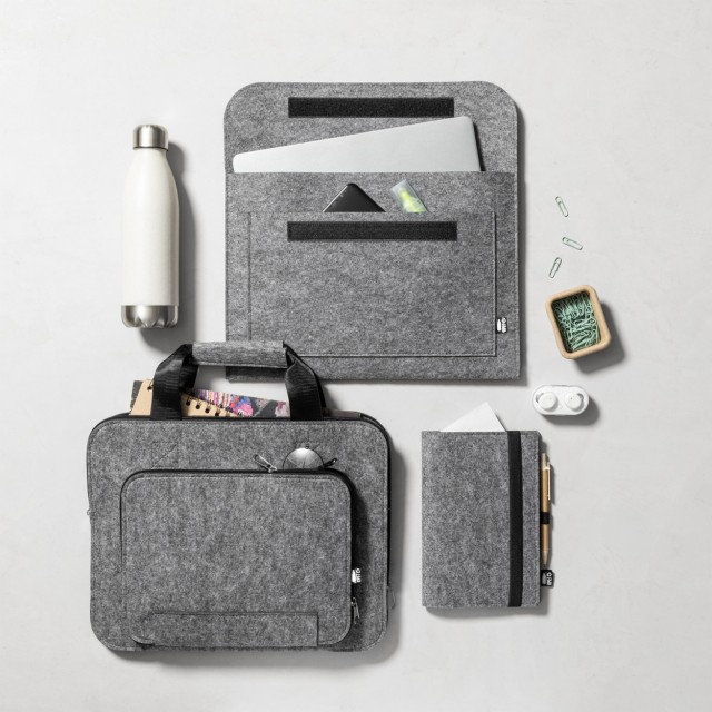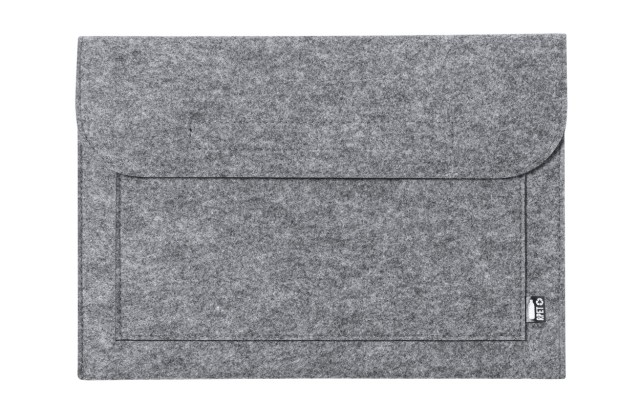 Pouzdro z RPET plsti na laptop s přední kapsou a zapínáním na suchý zip. S výrazným štítkem RPET.