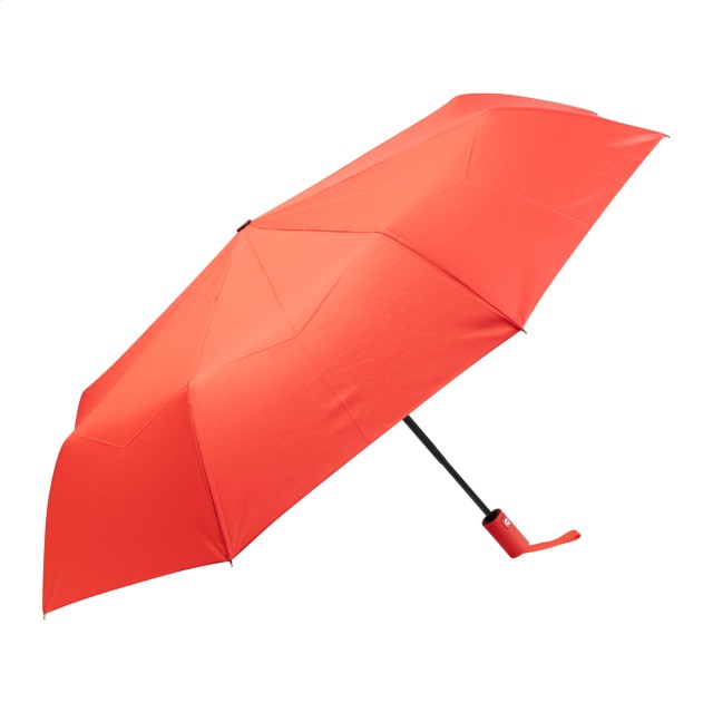 Plně automatický (otevřít/zavřít), větruodolný skládací deštník s 8 panely v pouzdře ve stejné barvě. S kovovým rámem, sklolaminátovými žebry a pogumovanou rukojetí. Pongee 190T RPET. S výrazným štítkem RPET.