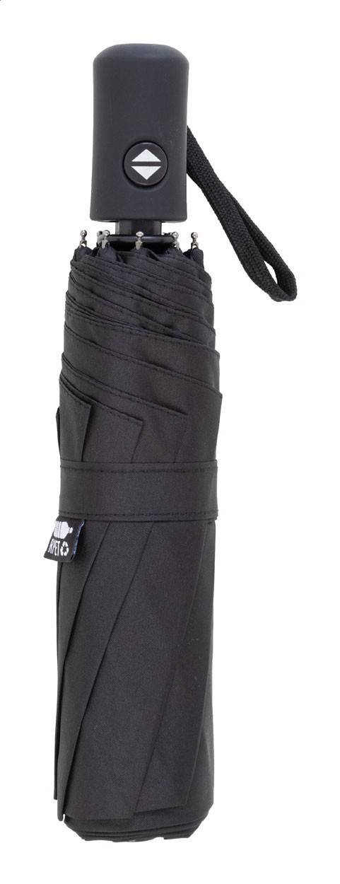 Plně automatický (otevřít/zavřít), větruodolný skládací deštník s 8 panely v pouzdře v odpovídající barvě. S kovovým rámem, sklolaminátovými žebry a pogumovanou rukojetí s poutkem na ruku. Pongee 190T RPET. S výrazným štítkem RPET.