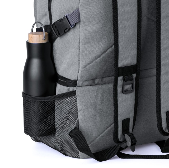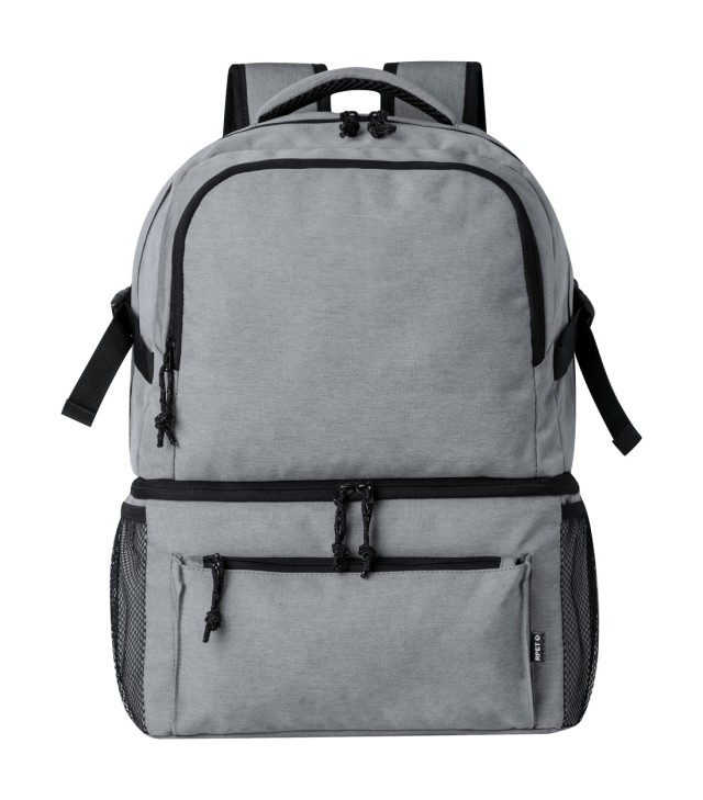 RPET batoh s PEVA polstrovanou chladicí přihrádkou, kapsami na zip, bočními síťovanými kapsami, polstrovanými zády a ramenními popruhy. Polyester 600D RPET, s výrazným štítkem RPET.