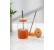 Sklenice z borosilikátového skla s brčkem z recyklované nerezové oceli a bambusovým víčkem, 450 ml.