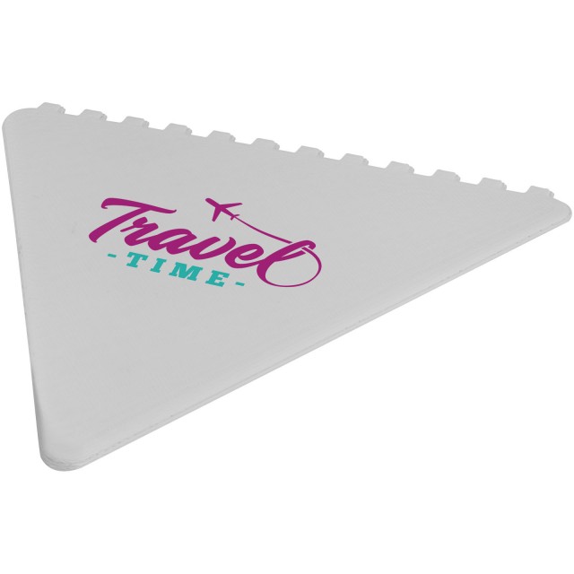 Trojúhelníková škrabka na led na čelní sklo s velkou plochou pro potisk. Vyrobeno ve Velké Británii z recyklovaného polystyrenového plastu.