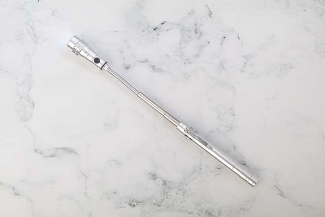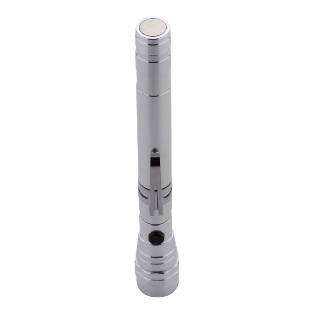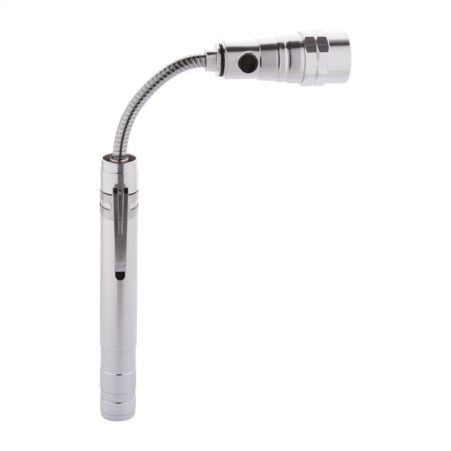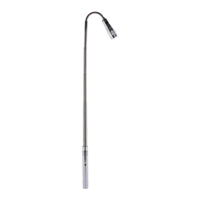 3 LED hliníková svítilna s výsuvnou a flexibilní hlavou, magnetem nahoře a kovovou boční sponou. Včetně knoflíkových baterií. Max. délka: 57 cm.