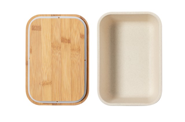 Box na jídlo z PP plastu s bambusovým víkem a elastickým páskem. 1000 ml.