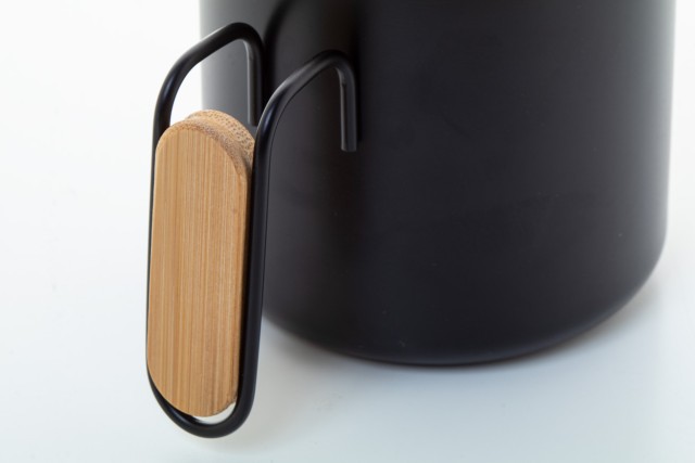 Dvoustěnný termo hrnek z recyklované nerezové oceli s bambusovým víčkem a rukojetí. 300 ml.