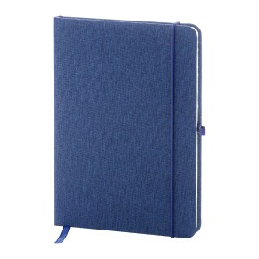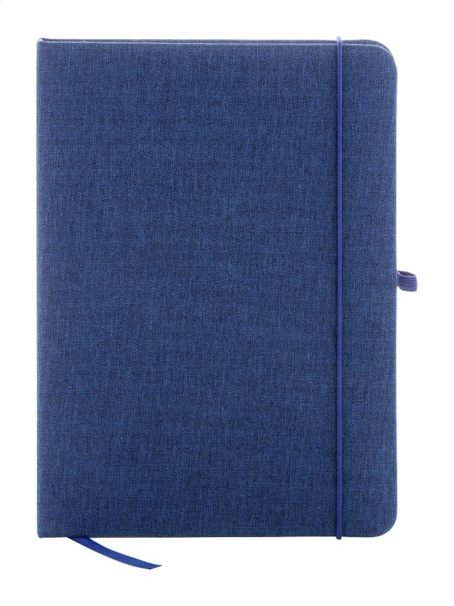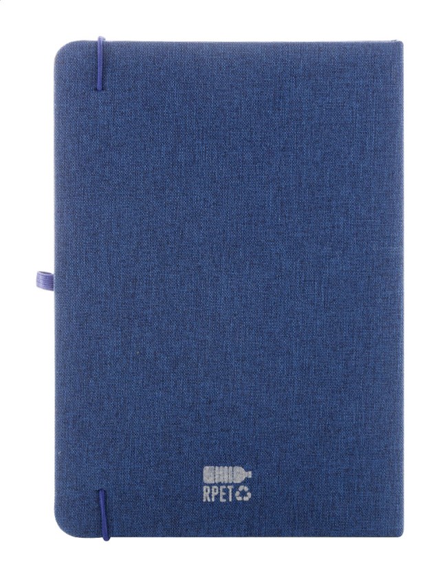 Blok A5 potažený polyesterem 300D RPET s 80 čistými listy. S gumovým páskem, záložkou a držákem na pero.