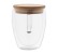 Dvoustěnný termohrnek z borosilikátového skla s uchem a bambusovým víčkem, 350 ml. V kraftové papírové krabici.