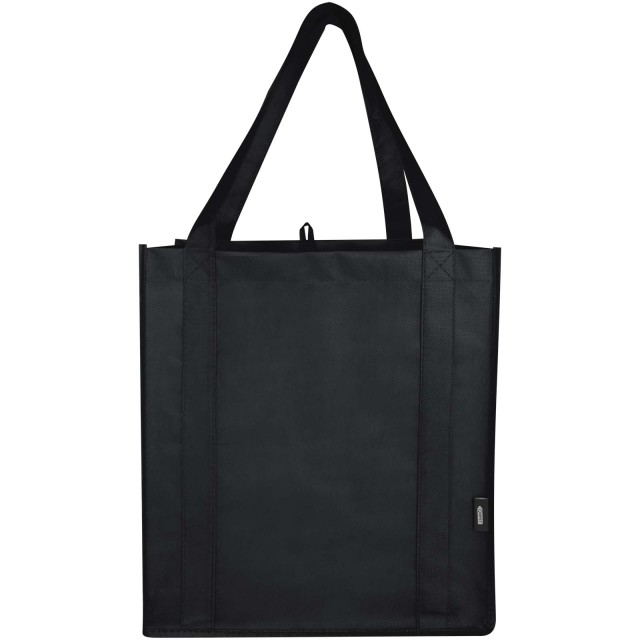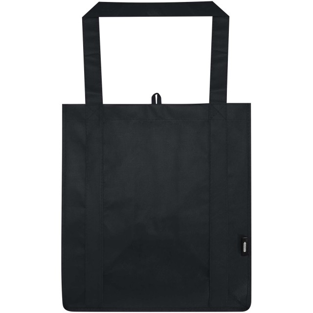 Recyklovaná nákupní taška Liberty s certifikací GRS vyrobená z odolného netkaného RPET má podpůrnou spodní desku, díky níž je univerzální a pevná. Nákupní taška má velkou hlavní přihrádku a ucha o délce 25 cm. Objemová kapacita: 29 litrů. Nosnost do 12 kg.